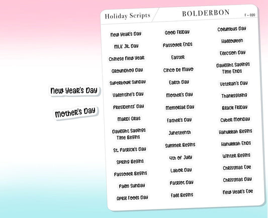 HOLIDAY SCRIPTS planner stickers || Labels for Planners, Calendars, Sticker Albums and More, Functional