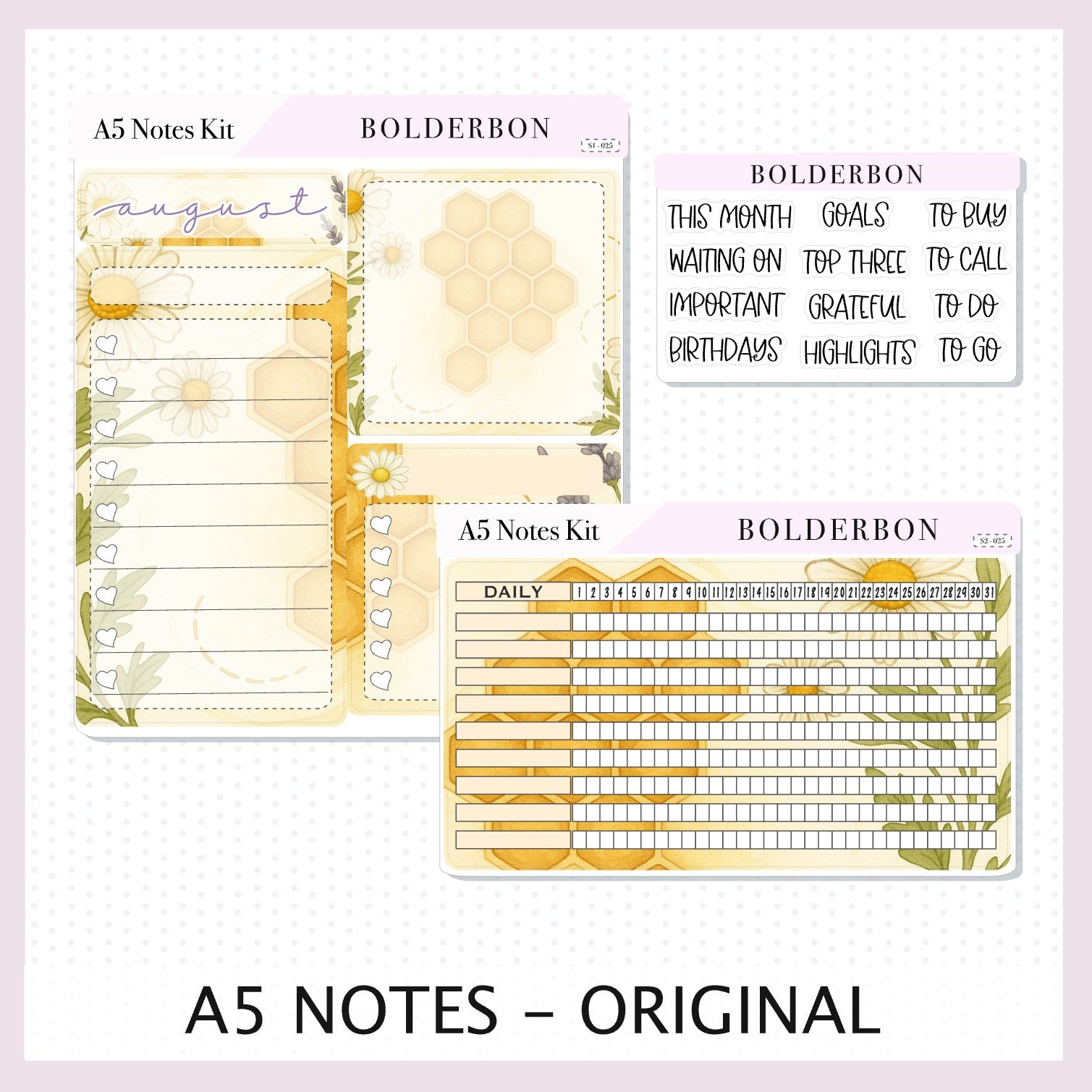 AUGUST A5 NOTES KIT Original Layout || Planner Sticker Kit for A5 Planners and Notebooks, Sweet Honey