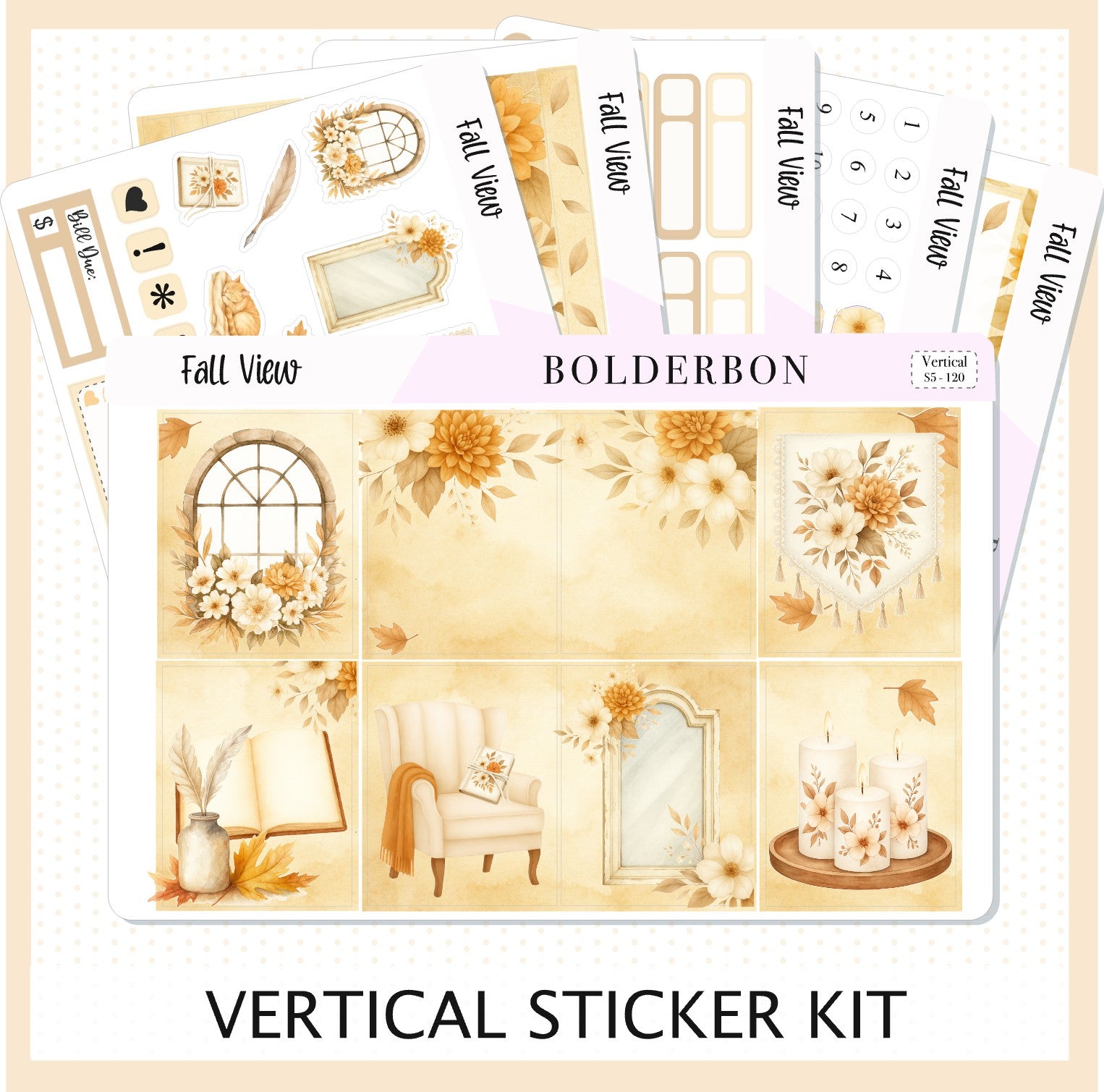 FALL VIEW 7x9 Vertical Sticker Kit || Cozy Autumn Floral Planner Stickers, Fall Elegant Aesthetic Vibe