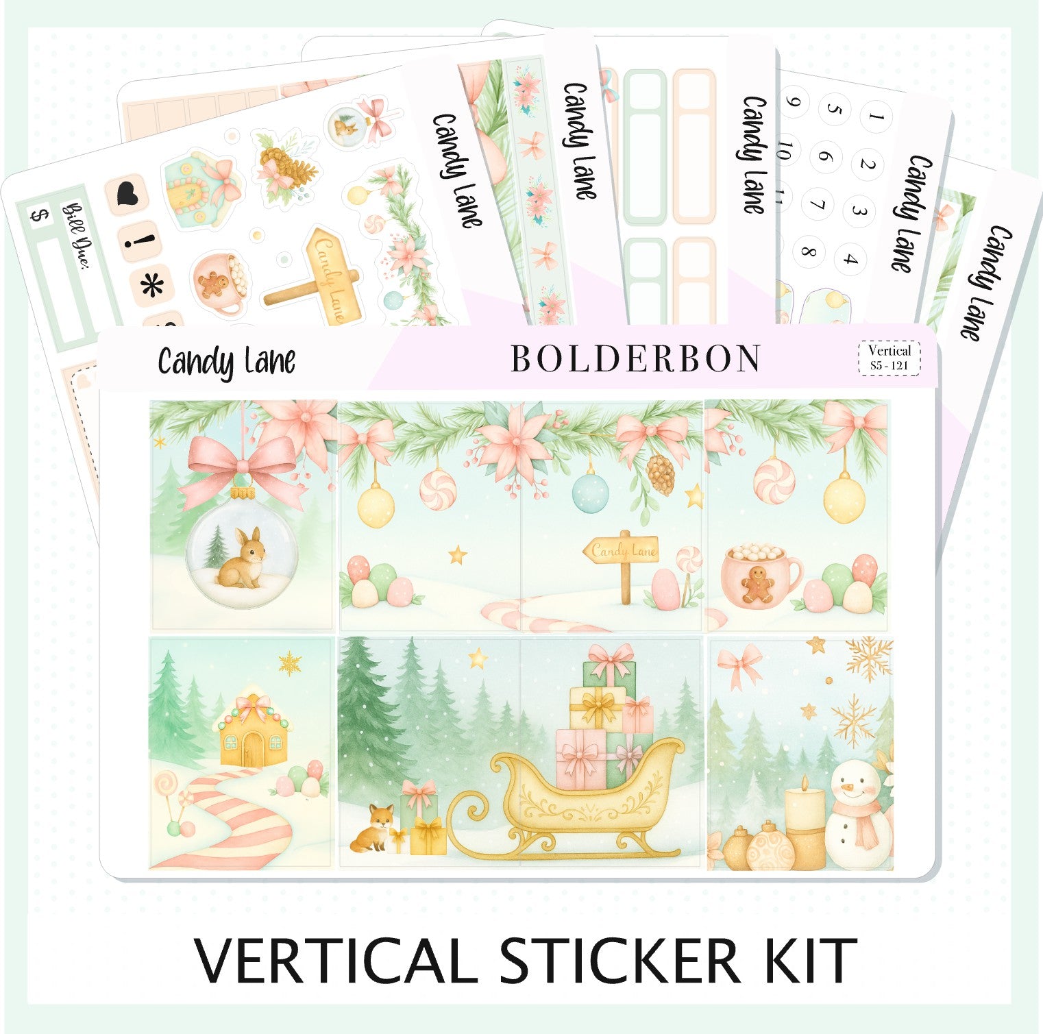 CANDY LANE 7x9 Vertical Sticker Kit || Festive Christmas Planner Stickers, Holiday Pastel Vibe