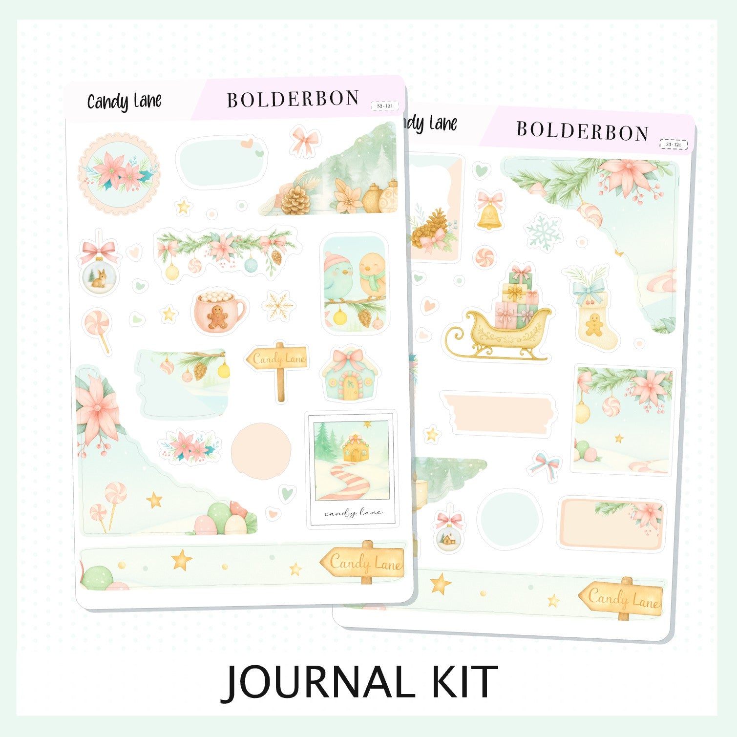CANDY LANE || Journal Sticker Kit, Festive Christmas Planner Stickers, Holiday Pastel Vibe