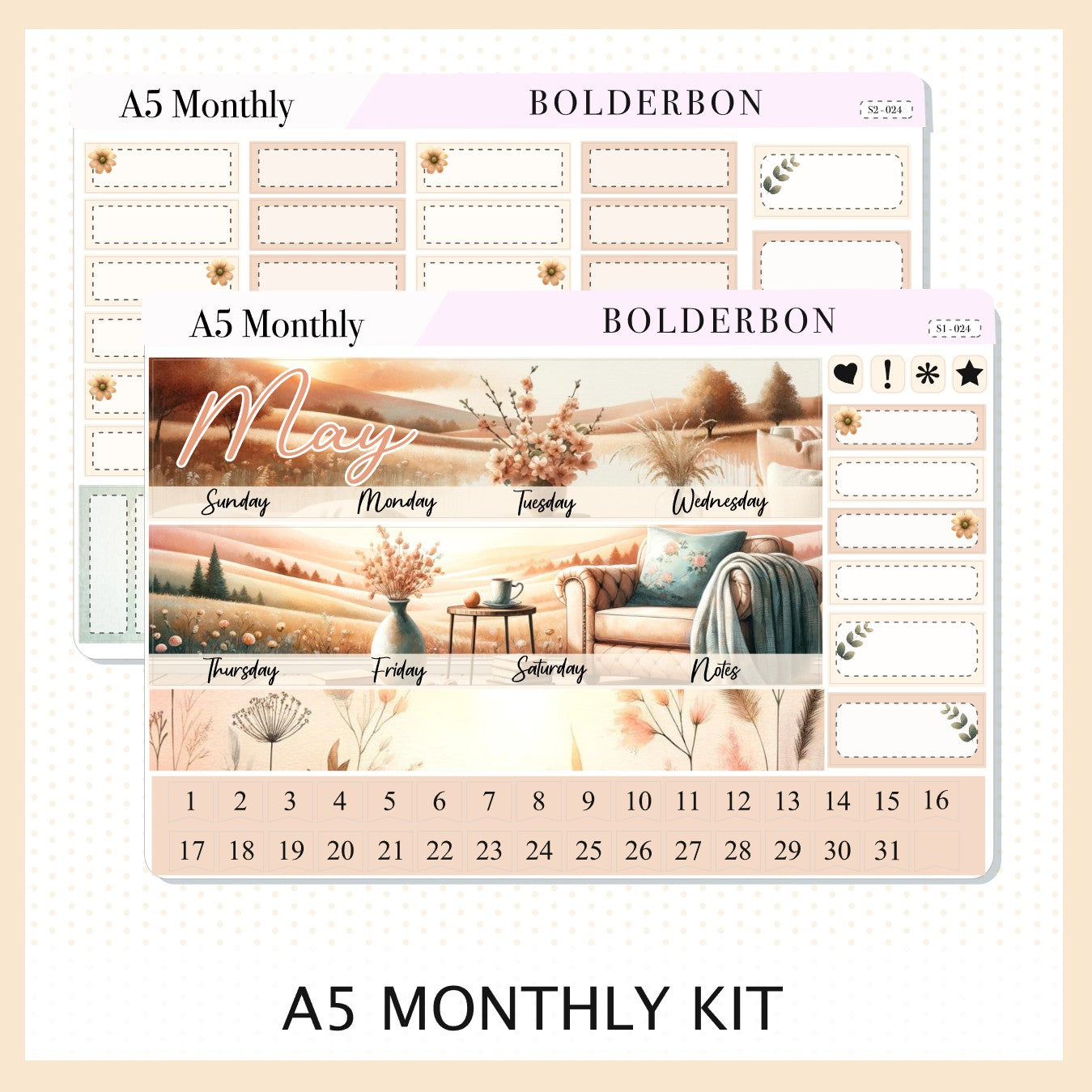 This beautiful MAY monthly sticker kit is designed for the Erin Condren A5 planner. Perfect for the A5 Daily Duo, Horizontal and Compact Vertical.