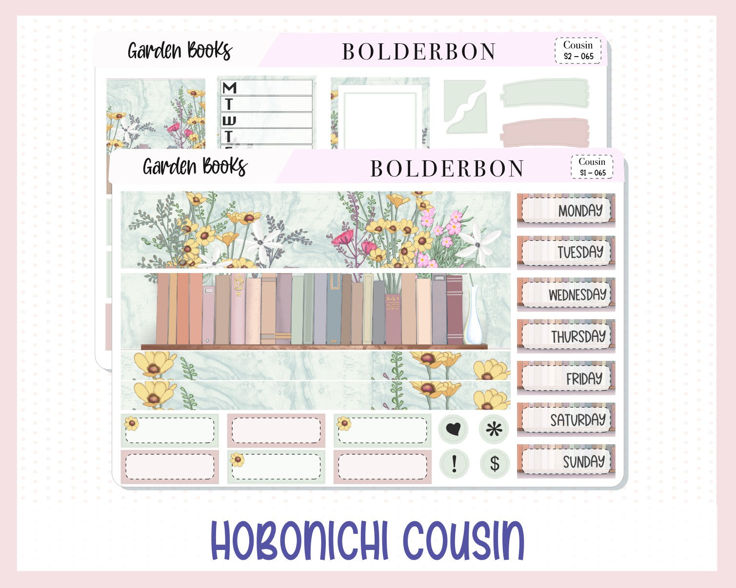 This beautiful hand drawn GARDEN BOOKS Weekly Kit is created to use in your Hobonichi Cousin.