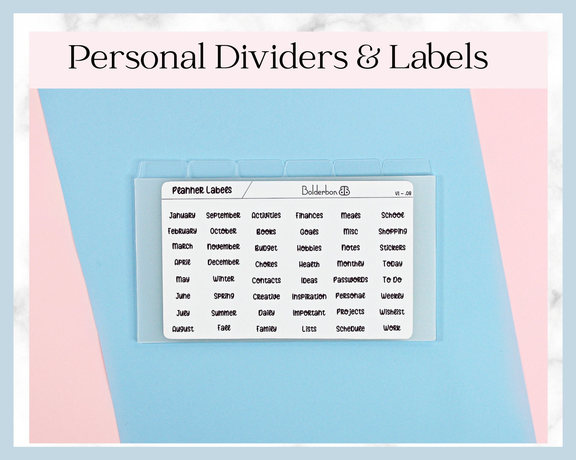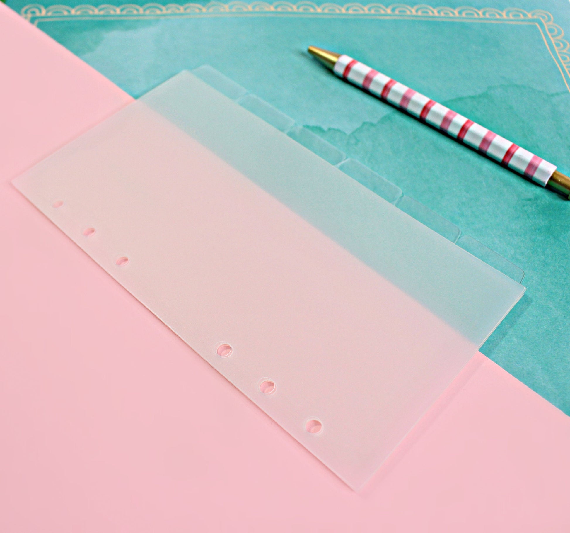 These PERSONAL Frosted Clear Dividers come with 6 side tabs, and are already punched for your ring bound planner.