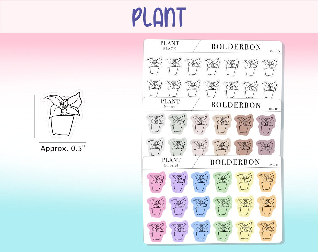 PLANT icons || Planner Stickers, Frosted Clear, Neutral, Minimal, Black, Colorful, Hand Drawn, Mini