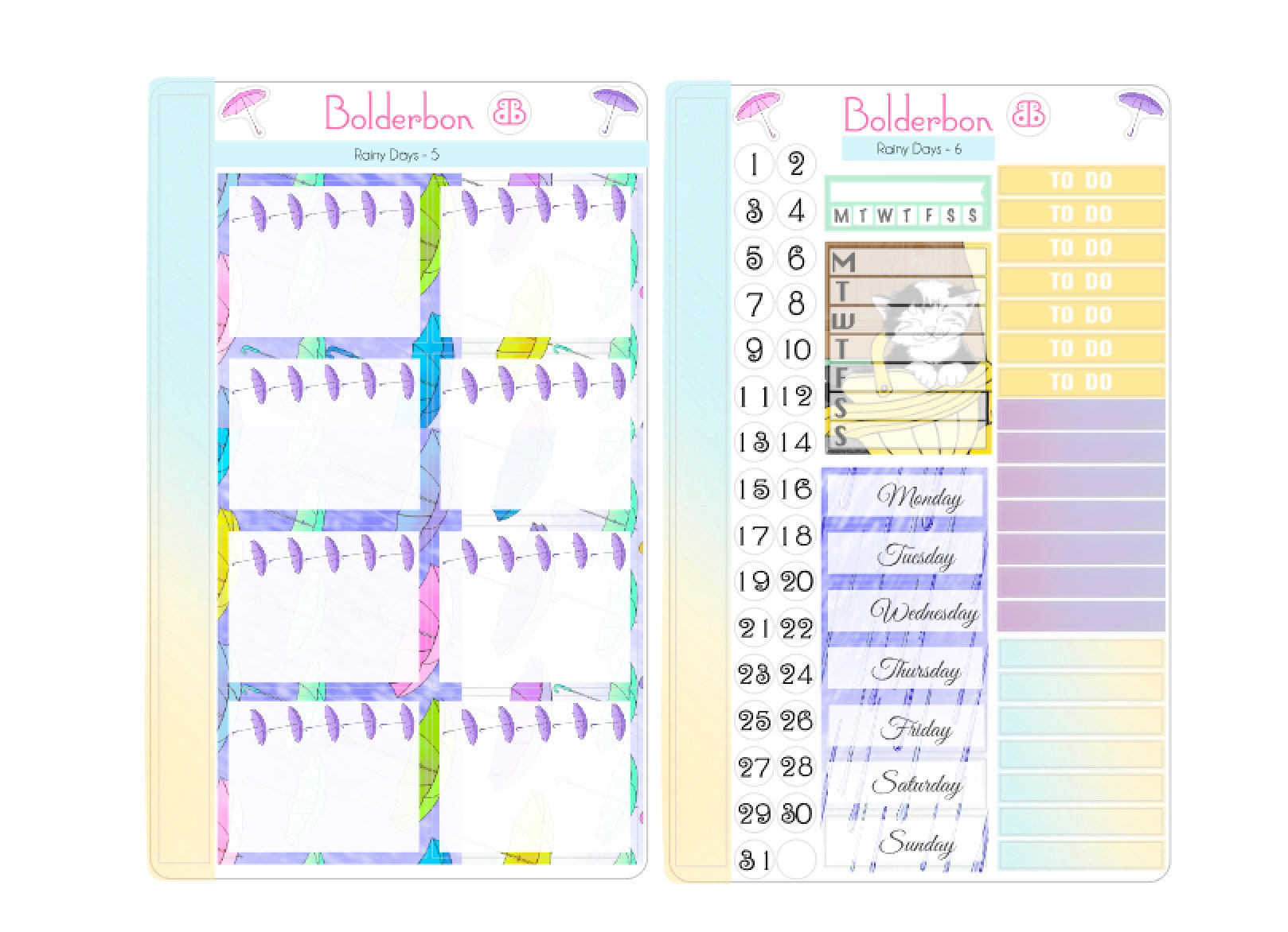 This beautiful hand drawn RAINY DAYS sticker kit is perfect to use in your Vertical Planners.