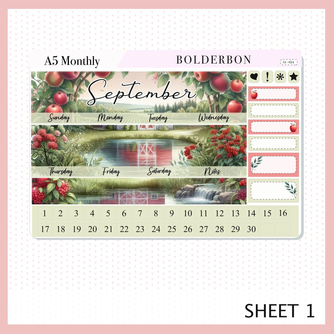 This beautiful SEPTEMBER monthly sticker kit is designed for the Erin Condren A5 planner. Perfect for the A5 Daily Duo, Horizontal and Compact Vertical.